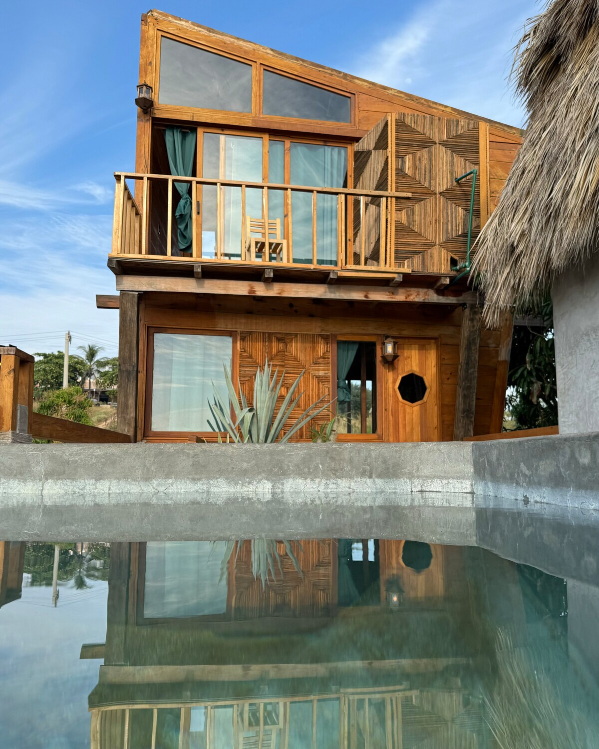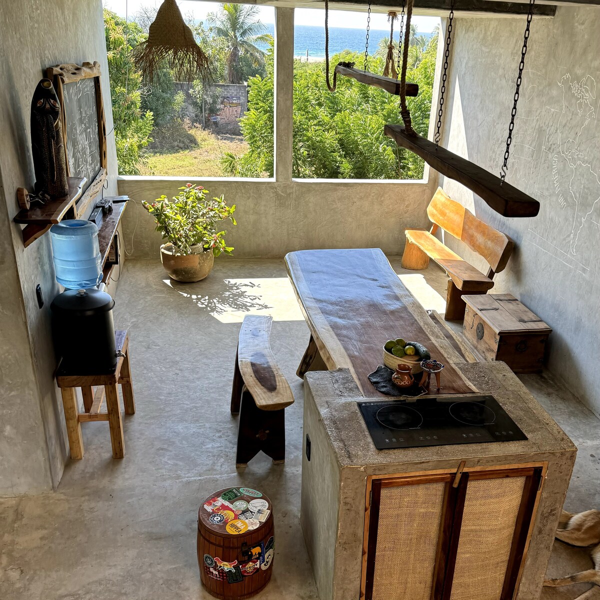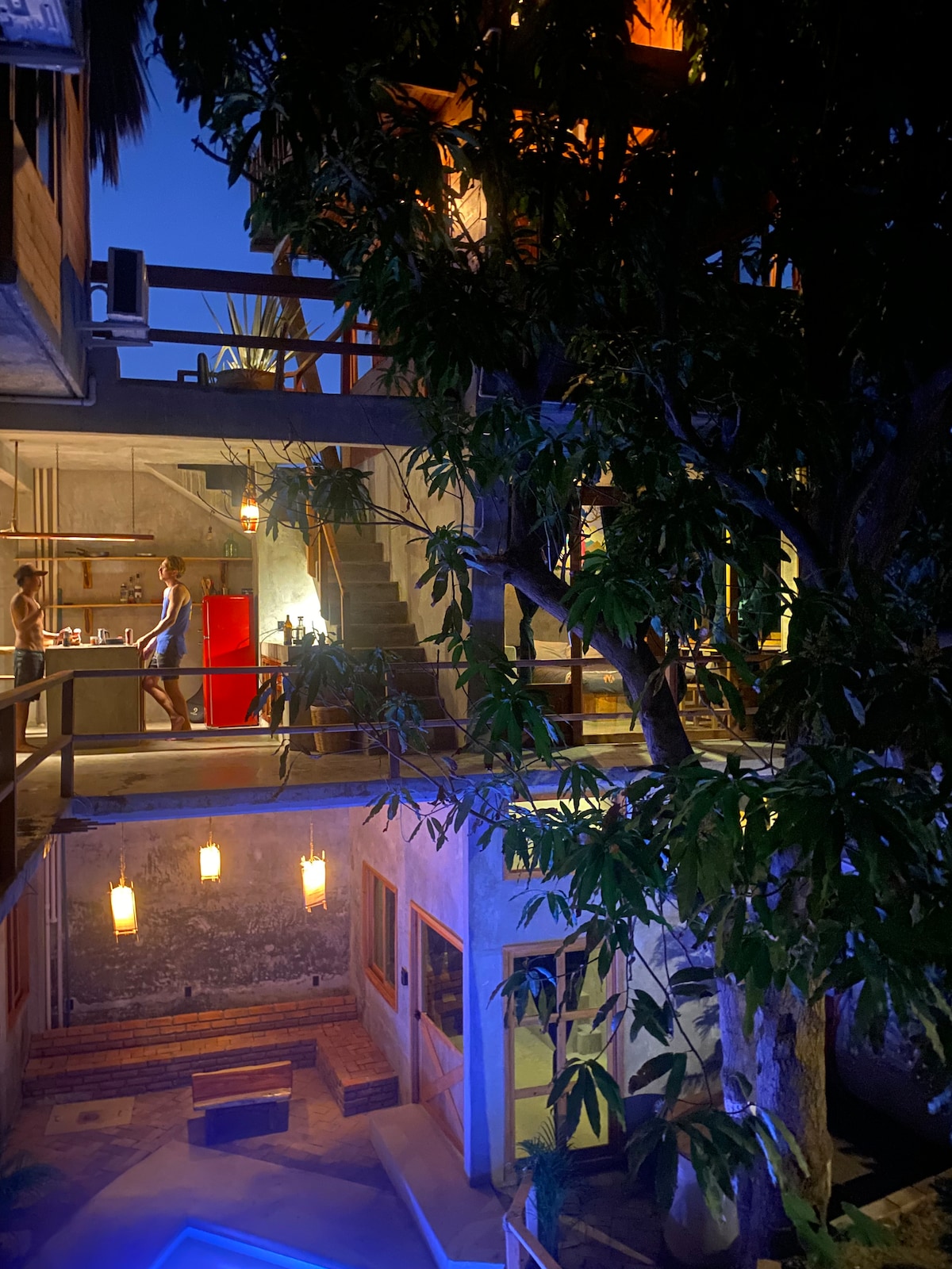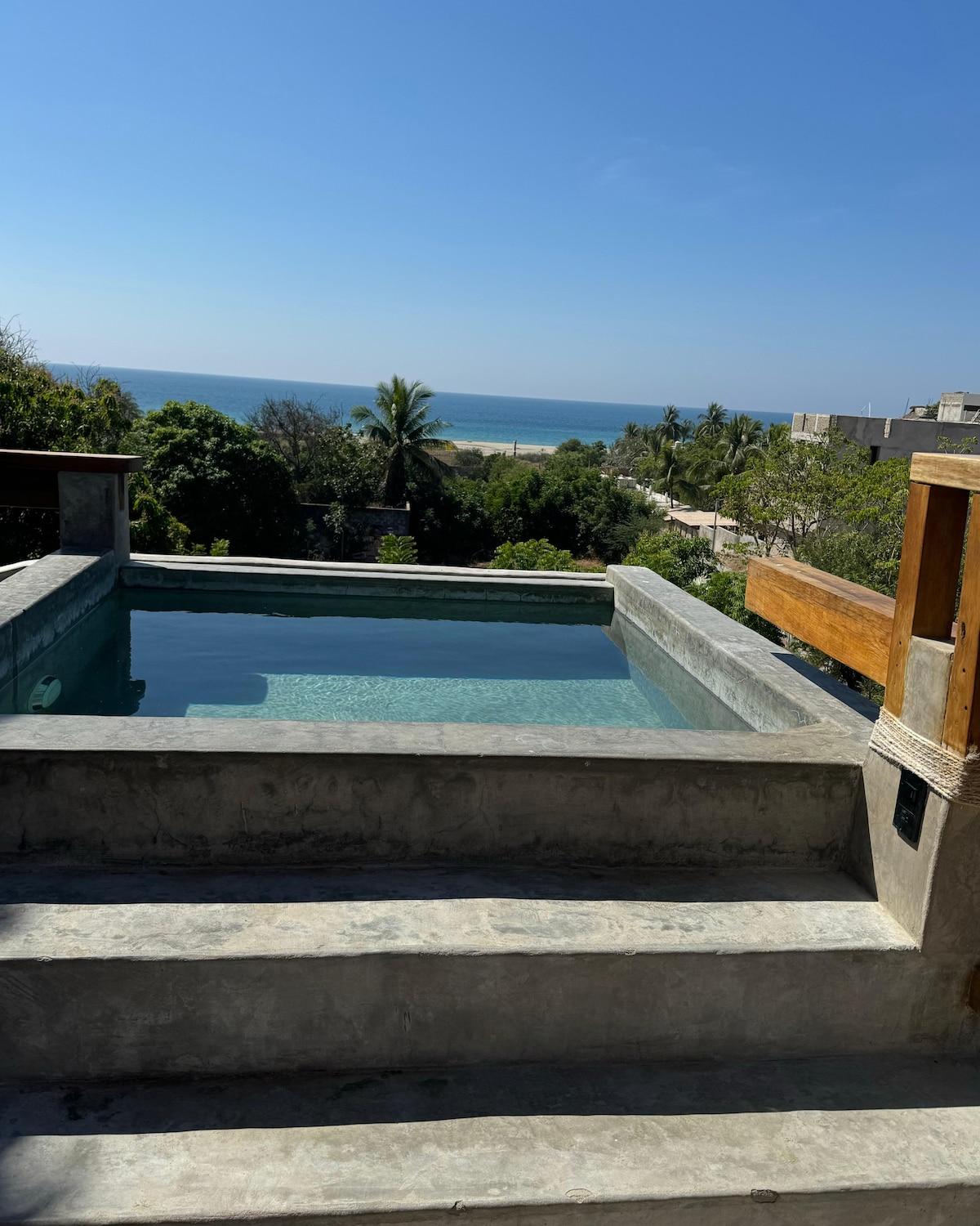 Escape to this designer oasis where 22 guests can unwind in style! Set among lush trees, our unique property combines privacy with social charm, offering 10 beds, each with AC, bathroom, and Starlink WiFi. Enjoy two pools (one with ocean views), a communal kitchen, and a laid-back vibe perfect for mingling. Conveniently located and just steps from Zicatela Beach and Market, this architecturally rich, breezy retreat is crafted for comfort, nature lovers, and social adventurers alike.